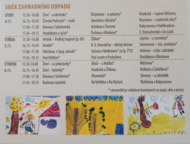 Sběr zahradního odpadu Posted on 31.10.2025 by Stemberkova V termínu 4.11. – 6.11.2025 bude probíhat svoz zahradního odpadu. V příloze časy a sběrná místa.